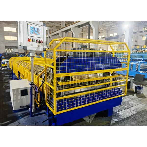 Roll Forming Unit 1. Rolling steps: 18 steps (18 roller stands) 2. Shaft: 75mm in diameter; 40Cr 3. Roller material: high quality 45# steel, Chromed 4. Power for roll forming: 5.5kw 5. Drive and transmission: electrically motor drive with chain transmission 6. Whole line speed: 15-20m/min 7. Covered with metal mesh to protect the safety of both human and the machine